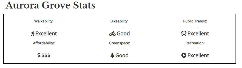• Aurora Grove is situated just east of downtown Aurora Village.